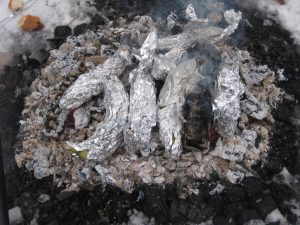 Grillade hamburgare till lunch smakade mums och till efterrätt/mellanmål blev det grillad banan med chokladbitar i och varm chokladmjölk. ”Det här var jättegott” var den allmänna kommentaren. Kanske inget jättenyttigt mellanmål men ibland får man vara lite lyxig även på fritids.