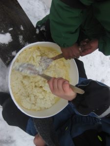 1. Vispa ihop äggen med mjöl och bakpulver i en bunke. Vänd ner risgrynsgröten och rör om.