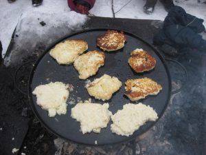 2. Smält smör i ett plättjärn och grädda plättarna ett par minuter på varje sida. Lägg dem på ett fat efter hand som de blir färdiga.