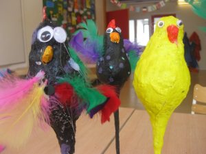 På lovet blev det en hel del påskpysslande. Av gamla glödlampor blev det jättefina tuppar.