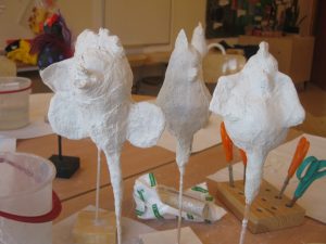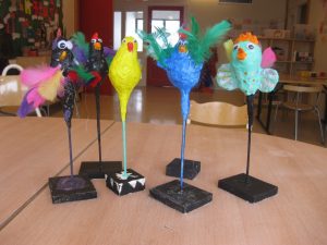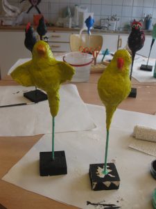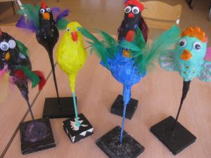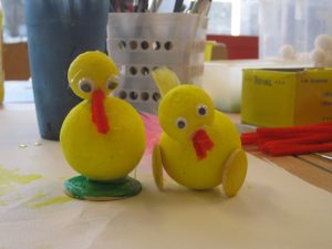 På lovet blev det en hel del påskpysslande. Av gamla glödlampor blev det jättefina tuppar.