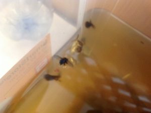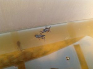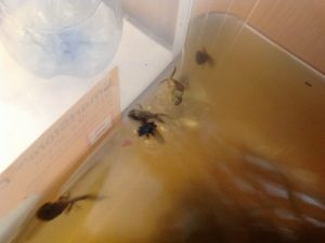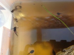 Först simmade de omkring och såg ut som fiskar. Sen började de få bakben och sen fick de framben. Nu har svansen börjat tillbakabildas och en del är helt färdiga grodor.