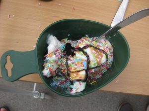 Nu kan vi pricka av ännu en sak på vår önskelista över vad vi vill göra på fritids. Där fanns ju nämligen önskemålet ”äta glass”.