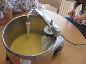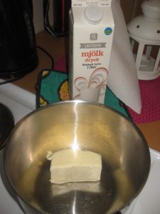 Tvåorna fick en lite större utmaning i år. De fick receptet och sen fick de läsa själva och samarbeta. Alla ingredienser och redskap de behövde (och lite till) stod lättillgängligt på en vagn. Jag fanns med som stöd, men det mesta fixade de själva!! Sååå duktiga!! Den sista gången bakade vi gluten-och mjölkfritt. Betydligt svårare, men det blev bra det med till slut!!