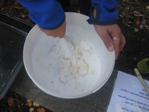 Vädret var nästan sommarvarmt så det blev en härlig eftermiddag med mycket lek, både gemensam och fri, och så bakade vi Naturumbröd.