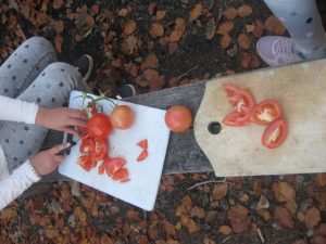 Vi grillade hamburgare till mellanmål och sen hann vi leka fritt också. Alla tyckte att leken i skogen funkade bra idag.