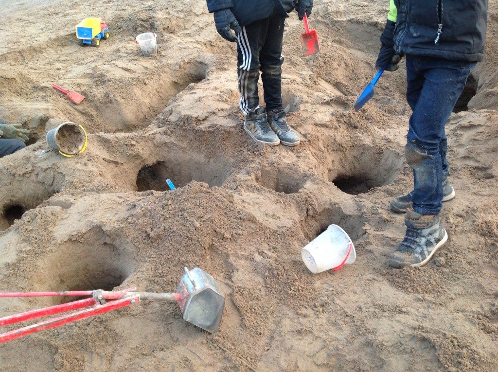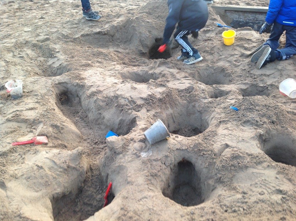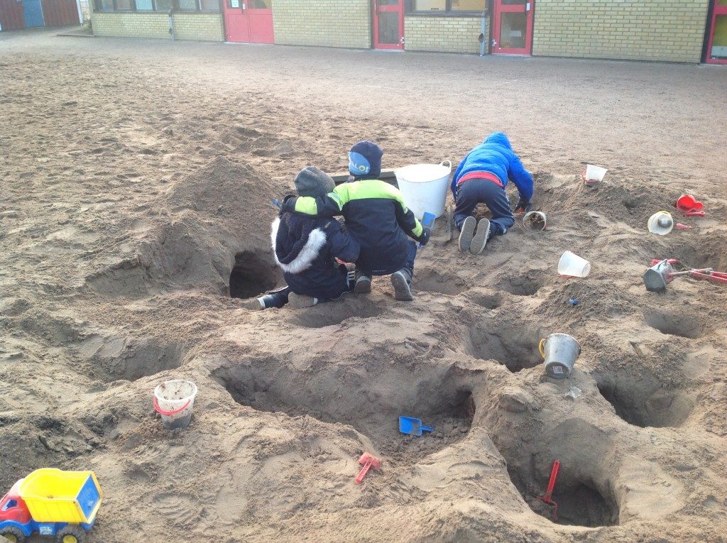 I sandlådan har det spontant växt fram ett häftigt bygge. Många på fritids har jobbat både raster och fritidstid.