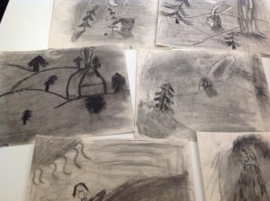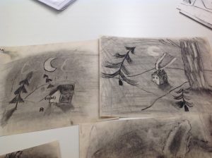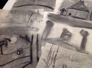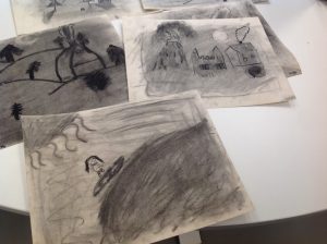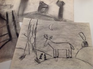 Den här veckan fortsatte vi med att teckna med kol!! Vi började med att titta på en film om hur man målar en nattbild. Sök på kolteckning på Youtube, så kommer den upp bland det översta, om ni vill se den!! Alla som målade var väldigt engagerade och hade massor av idéer!! Vi fortsätter med kol nästa vecka igen!!
