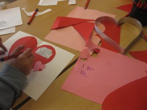 På Fritids pysslar vi kort och hjärtan i alla former.
