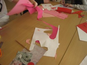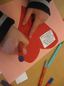 På Fritids pysslar vi kort och hjärtan i alla former.