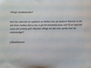 De allra flesta kände av att det kliade mellan tårna och sprang direkt bort till skolsköterskans rum!! Där möttes de av denna lappen: