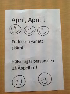 April, April!! Alla tyckte det var ett roligt skämt och det blev mycket skratt innan vi kom igång ,ed mellanmålet!!