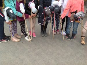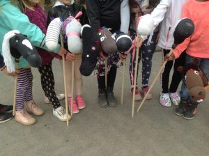 Idag var det dags för käpphästarna med ryttare att bege sig ut på ridtur.