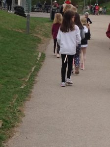 Hästarna stampade otåligt så vi gav oss av i skritt. Det blev en runda vid sportfältet och sen bort till lekplatsen vid Raskens väg. Där rastade vi lite innan vi red tillbaka till fritids.