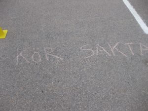 Vi byggde en bana på skolgården där vi tränade på olika moment i cyklingen, att bromsa o stanna, balans, cykla sakta, cykla i svängar och cykla runt i cirkel. Inte helt lätt alla gånger men alla var jätteduktiga och det gick bättre o bättre för varje runda.