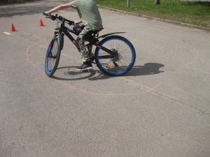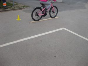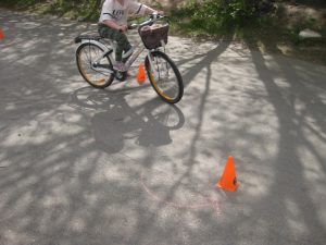 Vi byggde en bana på skolgården där vi tränade på olika moment i cyklingen, att bromsa o stanna, balans, cykla sakta, cykla i svängar och cykla runt i cirkel. Inte helt lätt alla gånger men alla var jätteduktiga och det gick bättre o bättre för varje runda.