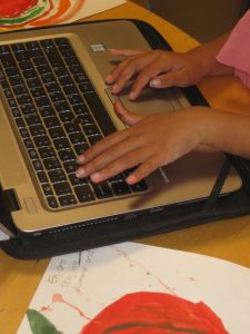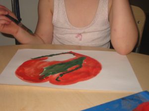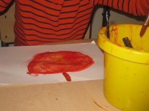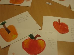 Vi målade äpplen med vattenfärg. Sen pratade vi om hur en bra kompis är och alla skrev ner en eller två meningar på dator som vi ska klistra upp tillsammans med äpplena.