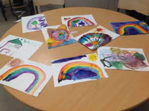 Som ett led i målet att hitta lugn och ro på fritids kommer vi att ha ett bord med vattenfärger framme de flesta dagar!! Tanken är att man ska kunna sätta sig och måla när man känner för det och att målandet ska vara avkopplande. Det ska bli en naturlig del i fritidstiden och minska stressen kring att alla vill göra aktiviteter först och precis när vi plockat fram det.
