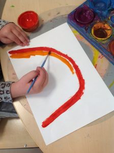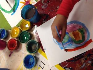 Som ett led i målet att hitta lugn och ro på fritids kommer vi att ha ett bord med vattenfärger framme de flesta dagar!! Tanken är att man ska kunna sätta sig och måla när man känner för det och att målandet ska vara avkopplande. Det ska bli en naturlig del i fritidstiden och minska stressen kring att alla vill göra aktiviteter först och precis när vi plockat fram det.