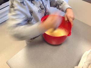 Idag har vi bakat sockerkaka. Bakning är en högt önskad aktivitet. Alla som ville fick hjälpa till och det var de flesta.
