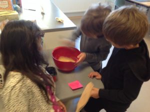 Alla fick läsa och mäta själva i grupper. Det här med dl och msk är inte så lätt. Det blir lite mattekunskaper på köpet?