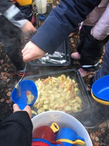 Till mellanmål idag stekte vi äpplen. Till det serverades vaniljsås, mycket uppskattat! Det fanns också knäckebröd, smör och ost.
