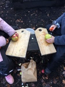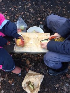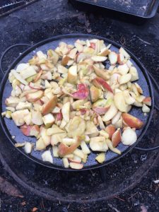 Till mellanmål idag stekte vi äpplen. Till det serverades vaniljsås, mycket uppskattat! Det fanns också knäckebröd, smör och ost.