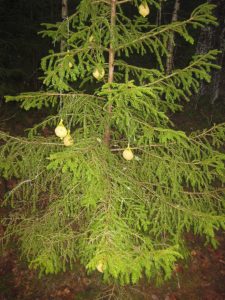 Även djuren i skogen måste ju få lite julgott. Därför klär vi Djurens julgran med talgbollar och dansar in julen med en riktig ringdans.
