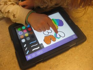 Vi har jobbat med I-pads och använt språket till att berätta, både med ord och bilder. Resultatet hänger i hallen. Titta gärna! Vi har också jobbat med olika skolappar.