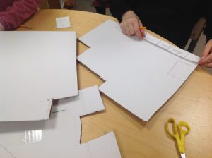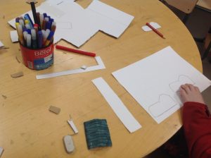 Idag efter mellanmålet fick några st börja bygga sina hus till vår modell av Teleborg!! Det finns två olika mallar att välja på, sen tar vi in lite olika material för att bygga hyreshusen och andra byggnader på Teleborg. Men första uppgiften är att alla ska bygga sitt eget hus.